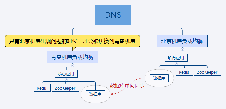 当北京机房发生故障的时候,可以把流量快速切换到青岛这边,以保障用户中心核心服务可用。