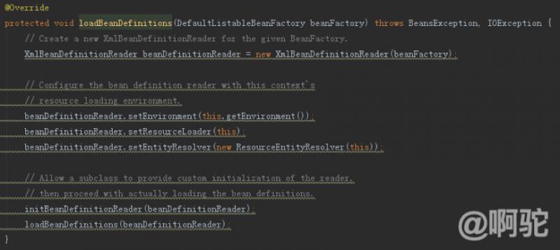 XML配置的加载由AbstractXmlApplicationContext实现,方法实现如下: