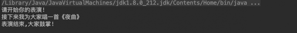 首先我们来模拟一个简单的动态代理的过程:某歌手去参加一个晚会,需要唱歌,他在演奏的过程中需要别人来报幕:演奏开始、演奏结束,每个歌手都遵循这样的过程,在歌手进行表演的过程,穿插着主持人的开场白和结语,我们来用代码模拟这个场景: