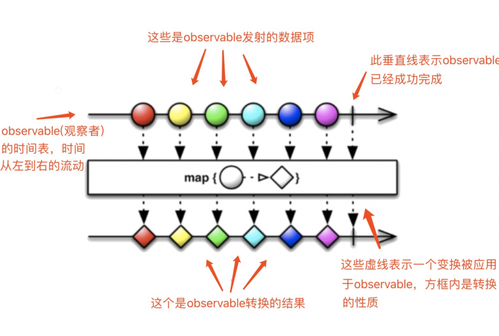 好了,因为秉持着要有图的思想,在介绍rxjava各个操作符的时候,会采用大量的图示来表示,图示来源于官方,这里先给大家介绍一下怎么看。