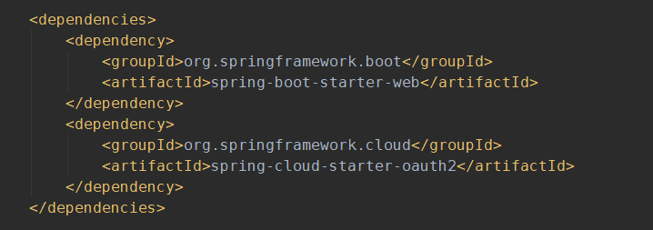 除了一个web组件,只引入了一个spring-cloud-starter-oauth2,这是因为spring cloud下的oauth2组件已经包含了security: