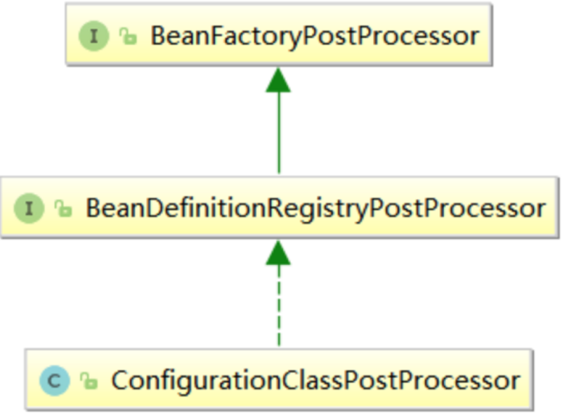 ConfigurationClassPostProcessor 位于 org.springframework.context.annotation 包中,这是一个 BeanDefinitionRegistryPostProcessor,隐含地也实现了接口BeanFactoryPostProcessor,用于spring 应用启动过程中 @Configuration 类的处理(发现和处理所有的配置类,注册其中的bean定义)。