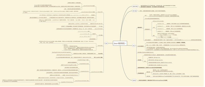 这是一个Java8新增特性的总结图。接下来让我们一次实践一下这些新特性吧