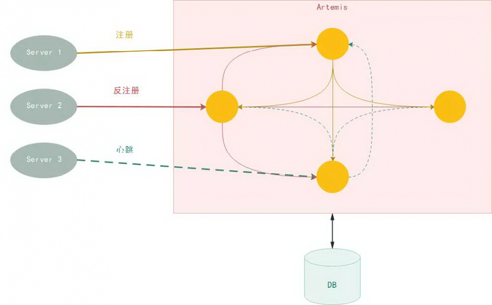 在服务治理这方面,携程现有的 SOA 框架已经有了一套完整的服务注册中心和服务治理系统。对于服务注册中心,大家比较常用的可能是 Apache Zookeeper 。而我们使用的是参考 Netflix 开源的 Eureka 自行研发的注册中心 Artemis 。Artemis 的架构是一个去中心的对等集群。各个节点的地位相同,没有主从之分。服务实例与集群中的任意一个节点保持长连接,发送注册和心跳信息。收到信息的节点会将这些信息分发给其他节点,确保集群间数据的一致性。客户端也会通过一个长连接来接受注册中心推送的服务实例列表信息。