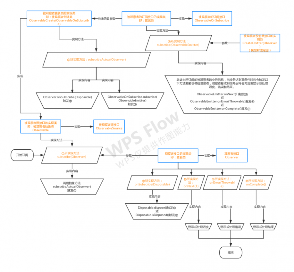 经过两晚阅读RxJava源码的时间,终于把RxJava从观察者订阅被观察者、到被观察者发射订阅信息给观察者、到观察者解除订阅被观察者的信息,这一串基本流程通过流程图的形式体现了出来。所读源码版本是RxJava2.2.13,以下是流程图对应的示例代码。