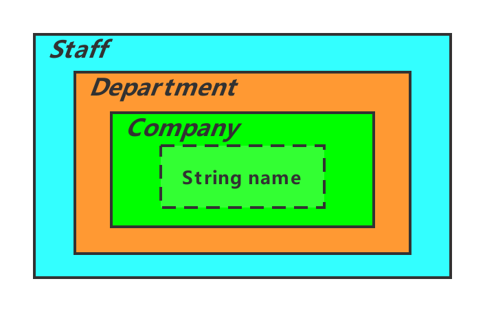Staff staff=..; staff.getDepartment().getCompany().getName();