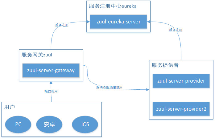zuul-eureka-server:服务注册中心,服务名:zuul-eureka-server,端口:8761