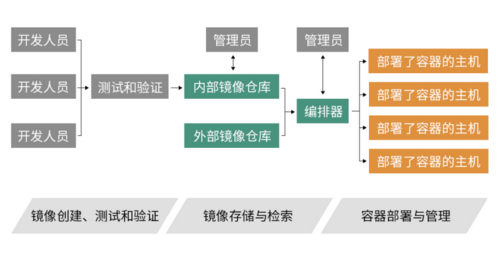 理解容器技术架构的另一种方法是考虑容器生命周期的阶段,如图底部所示。下文将会对这三个阶段进行更简单的介绍。