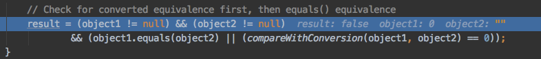 && (object1.equals(object2) || (compareWithConversion(object1, object2) == 0));
