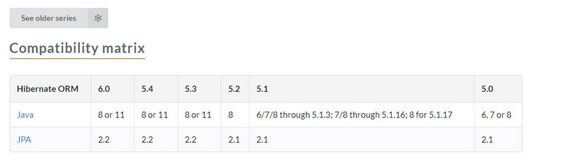 有关 JPA 的支持列表可以访问页面: https://hibernate.org/orm/releases/