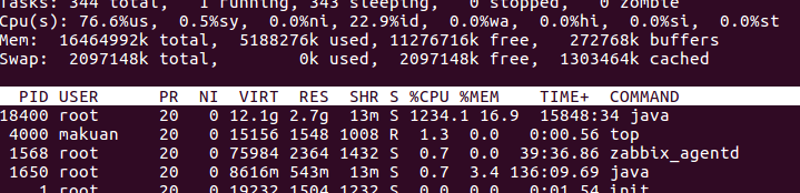 1:通过 #top 命令查看,我的java服务确实把CPU几乎占满了,如图