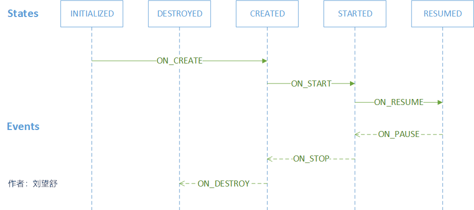 Lifecycle 使用两个枚举来跟踪其关联组件的生命周期状态,这两个枚举分别是 Event 和 State。