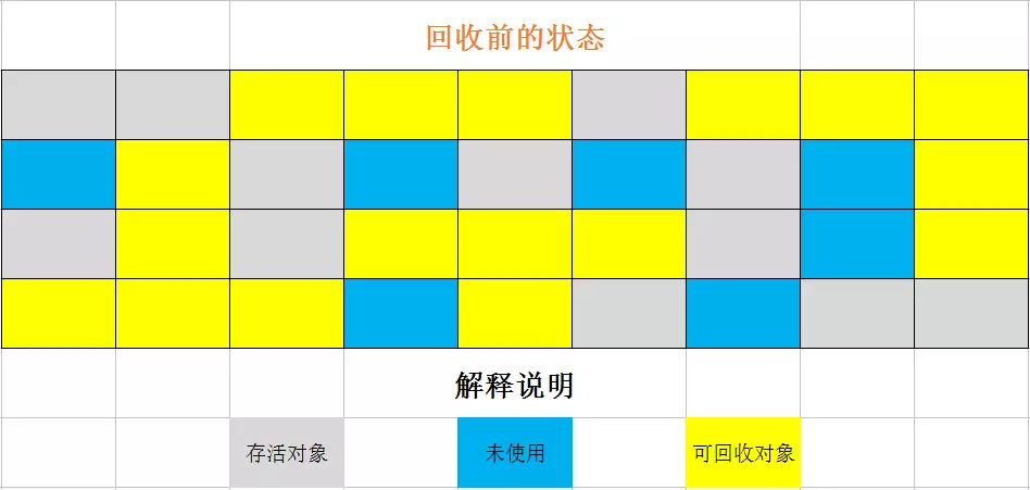 先对可用的对象进行标记,然后所有被标记的对象都向一端移动,最后直接清理掉端边界以外的内存。