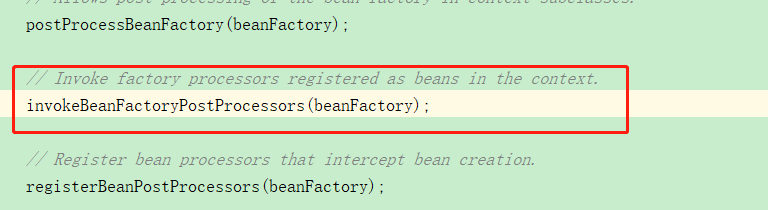 - 然后执行 BeanFactoryPostProcesso r 调用postProcessBeanFactory 提供修改BeanDefinition功能.