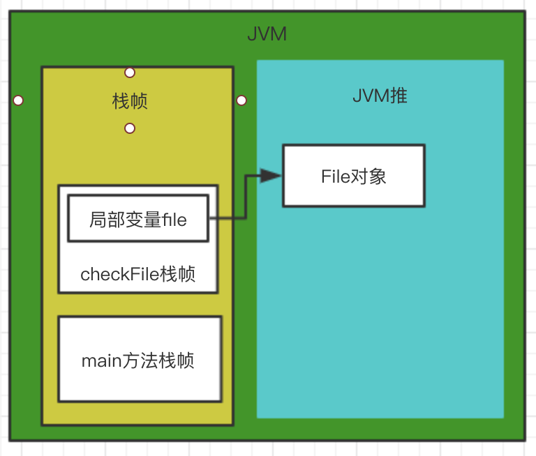 程序执行起来在调用 checkFile 的时候JVM图大概像这样: