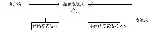 NotTerminalExpress:每一条规则都需要一个具体的非终结符表达式用来衔接,一般是指运算符或者逻辑判断,比如c=a+b,“+"就是非终结符,解析“+”的解释器就是一个非终结符表达式。