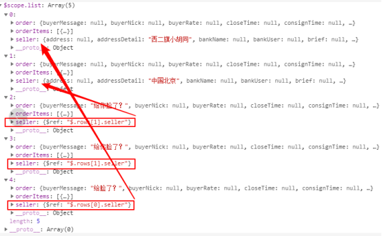 从页面图片我们可以看到,添加了重复的seller之后,只有第一个可以正常显示,后面的都是显示为$ref:"$.rows[0].seller",出现这种现象的原因是fastjson开启了fastjson的“循环引用检测”机制,这种机制会让fastjson在对于将Java对象转化为对应的json对象的时候,同一个对象的使用,下面的对象都改为了对前面对象的应用,所以,这就是我们为什么看到"$.rows[0].seller"这个东西的原因,那么,我们只要讲这种“循环引用检测”机制关掉即可