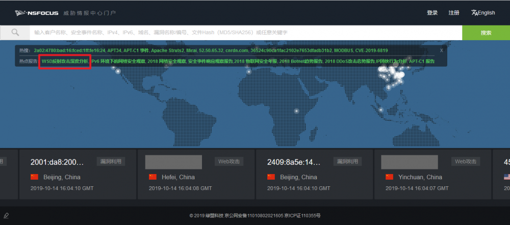 此外,绿盟威胁情报中心(NTI)一直支持对于WSD服务的检索,可提供最新WSD暴露资产情报并持续更新。