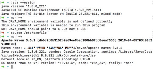 export JAVA_HOME="/Library/Java/JavaVirtualMachines/jdk-1.8.0_221.jdk/Contents/Home" export MAVEN_HOME=/自定义maven路径/apache-maven-3.6.1 export PATH=$JAVA_HOME/bin:$PATH export PATH=$MAVEN_HOME/bin:$PATH