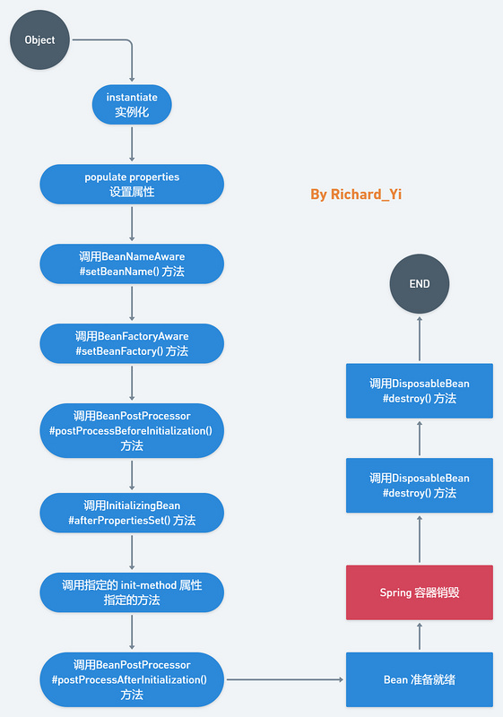 先来看看 Spring Bean 的生命周期流程图。结合图看后面的描述会更轻松一点哦。