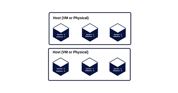 此类微服务的部署方法能够让您在对应的主机上单独地运行每一个实例。此处的实例包括:基于单个虚拟机的服务实例,和基于单个容器的服务实例。
