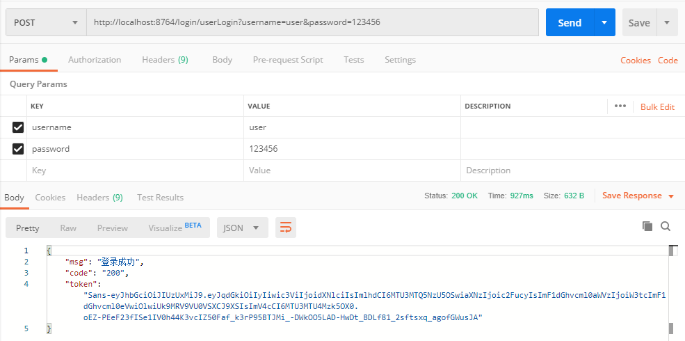 登录USER角色账号,登录成功后我们会获取到身份认证的Token