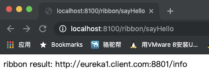 重启动服务,访问 http://localhost :8100/ribbon/sayHello,显示如下: