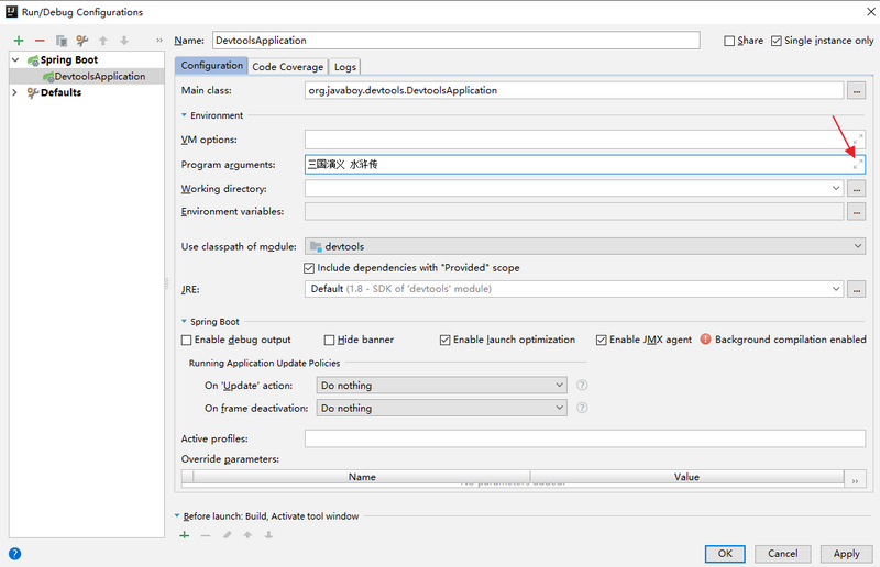 java -jar devtools-0.0.1-SNAPSHOT.jar 三国演义 西游记