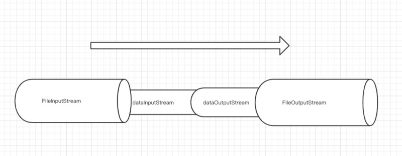 例如一个实现文件复制的程序,数据源从文件输入流到字节数据输入流,再通过字节数据输出流到文件输出流。