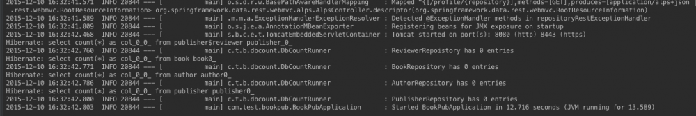 这里我们会用一个不太规范的starter展示Spring Boot的自动配置的运行原理。 Spring Boot的自动配置、Command-line Runner 一文中曾利用StartupRunner类在程序运行启动后首先查询数据库中书的数目,现在换个需求: 在系统启动后打印各个实体的数量 。