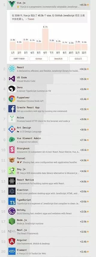 2,Vue在Github的欢迎度