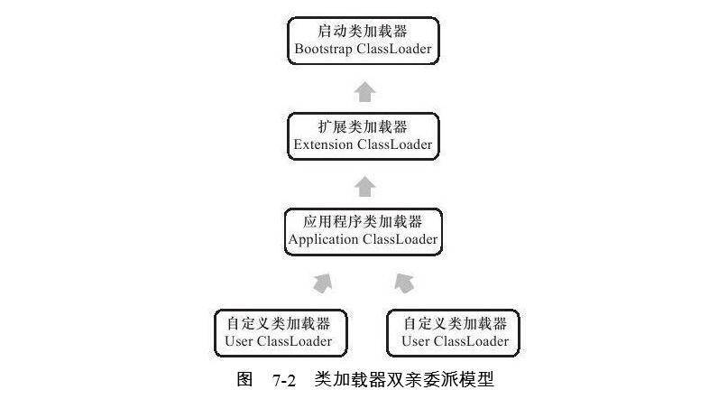<Java_Runtime_Home>/lib 下面的类库加载到内存中(比如 rt.jar )。由于引导类加载器涉及到虚拟机本地实现细节,开发者无法直接获取到启动类加载器的引用,所以不允许直接通过引用进行操作。 ExtClassLoader(sun.misc.Launcher$ExtClassLoader) 实现的。它负责将 < Java_Runtime_Home >/lib/ext 或者由系统变量 java.ext.dir 指定位置中的类库加载到内存中。开发者可以直接使用标准扩展类加载器。 AppClassLoader(sun.misc.Launcher$AppClassLoader) 实现的。它负责将系统类路径( CLASSPATH )中指定的类库加载到内存中。开发者可以直接使用系统类加载器。 双亲委派机制: