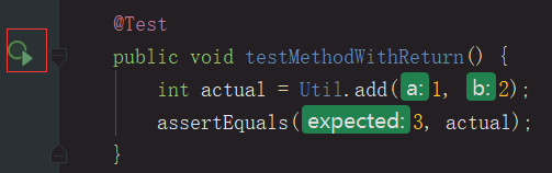 也可以点击当前测试类旁边的箭头,执行测试类下面所有的测试方法。