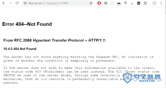 使用vulhub进行环境搭建( https://github.com/vulhub/vulhub/tree/master/weblogic/CVE-2017-10271 ),服务器端开放的端口为7001,访问后出现如下404页面说明weblogic正常搭建。