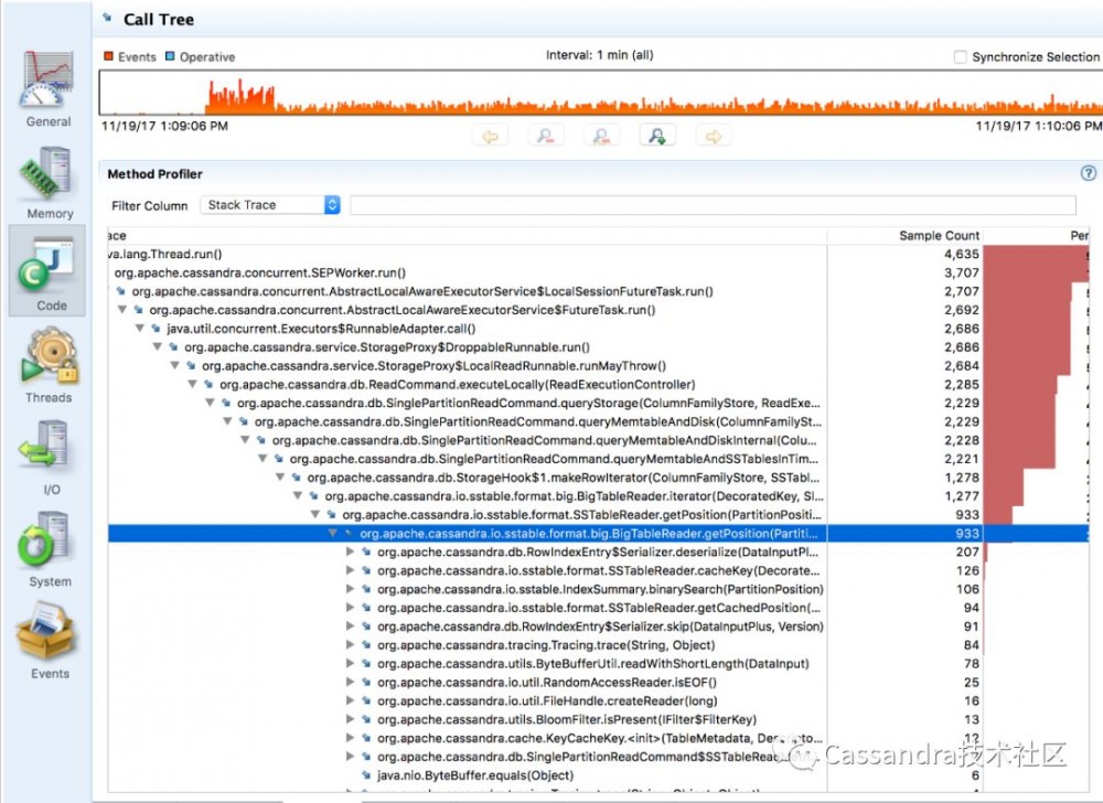 2.上述是针对Cassandra生成的火焰图,对于其他的java平台软件也适用,比如HBase、Spark等;