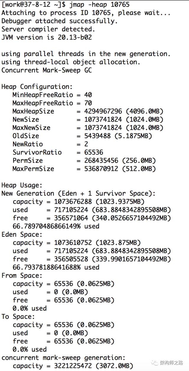 方法: jmap -heap 10765
