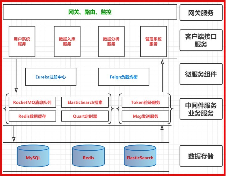 管理RocketMQ消息队列服务、Redis缓存服务、Quart定时器服务、ES搜索服务,提供统一的Feign服务接口。