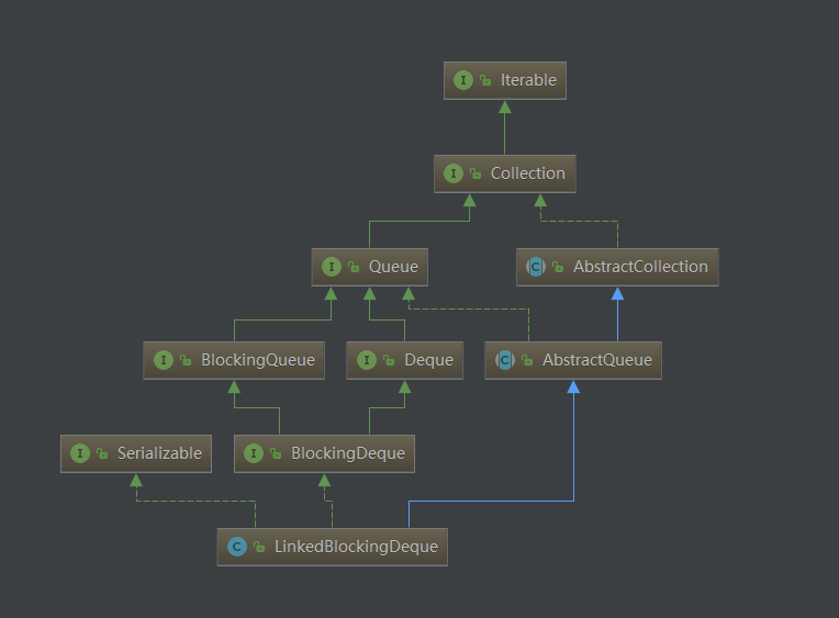 LinkedBlockingDeque在结构上有别于之前讲解过的阻塞队列,它不是Queue而是Deque,中文翻译成双端队列,双端队列指可以从任意一端入队或者出队元素的队列,实现了在队列头和队列尾的高效插入和移除