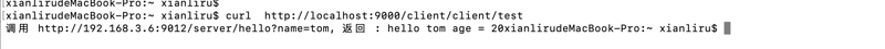 启动服务 命令行curl http://localhost :9000/client/client/test