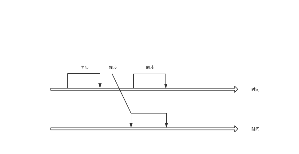 同步和异步通常用来形容一次方法调用。同步调用一旦开始,调用者必须等到方法返回后才能进行后续操作;而异步调用更像是一次消息传递,调用的方法会立刻返回,调用者就可以进行后续操作。如图所示,同步调用会阻碍当前线程的后续步骤,而异步调用则会将操作放到另一个线程执行,不会阻碍调用者的后续工作。从调用者的角度来看,异步操作似乎是瞬间完成的。