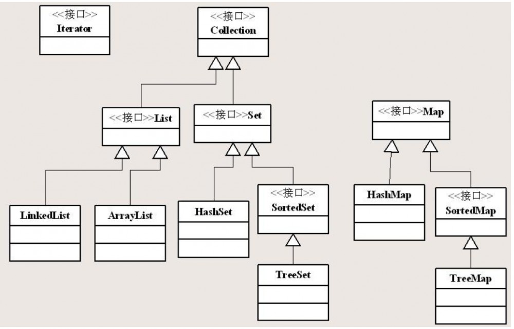 Iterator,所有的集合类,都实现了Iterator接口,这是一个用于遍历集合中元素的接口,主要包含以下三种方法: