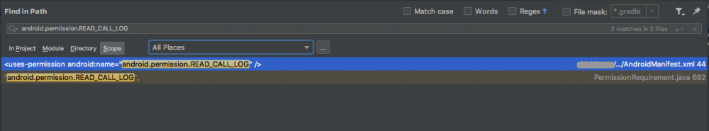 项目开发中,AS(Android Studio)经常会用到通过关键字在项目空间下搜索对应结果。最经常用到的 Find in Path 。例如打开 Find in Path 后,可以选中 Scope tab,选择 All Places 范围去搜索对应的关键字,下方会自动显示对应的搜索结果。