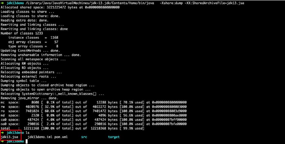 /Library/Java/JavaVirtualMachines/jdk-13.jdk/Contents/Home/bin/java -Xshare:dump -XX:SharedClassListFile=classes.lst -XX:SharedArchiveFile=jdk13-custom.jsa --class-path target/HelloApp.jar 复制代码