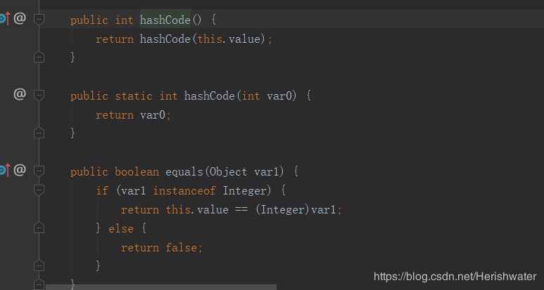 如上图所示,Integer 类中关于 equals()方法和 hashCode()方法进行了重写,所以如果想比对内存地址的不同,需要使用System.identityHashCode(Object)方法。