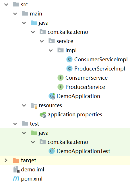 使用IDEA新建项目,选择maven管理依赖和构建项目,在pom.xml中添加spring-boot-starter和spring-kafka依赖配置,项目中会使用单元测试检查整合是否正确,所以需要添加spring-boot-starter-test依赖,pom.xml详细内容如下。