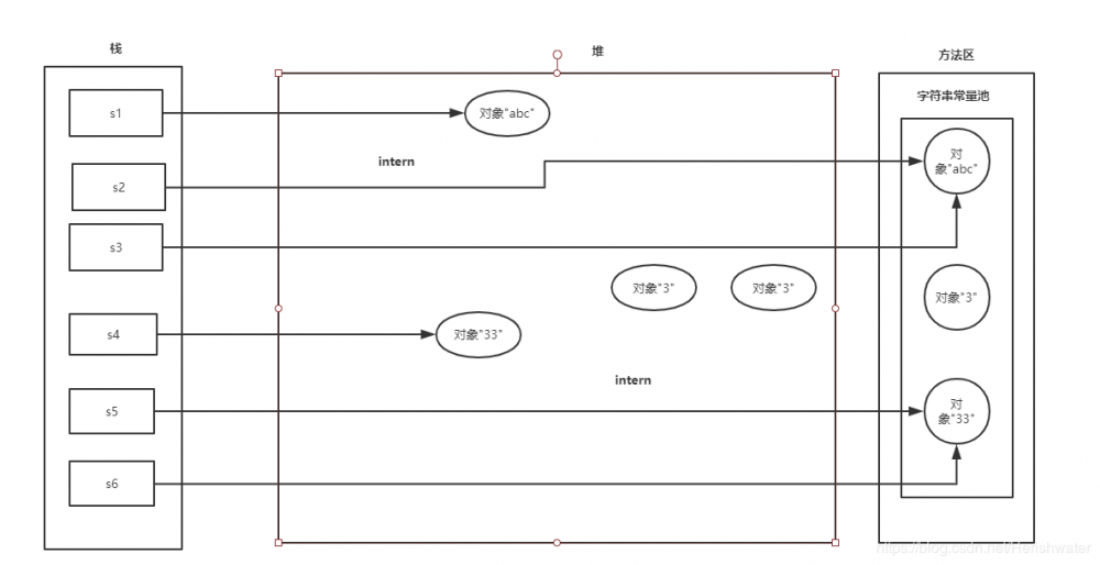 String s5 = s4.intern(); 语句在字符串常量池中发现有“33”对象的引用,区别就在于