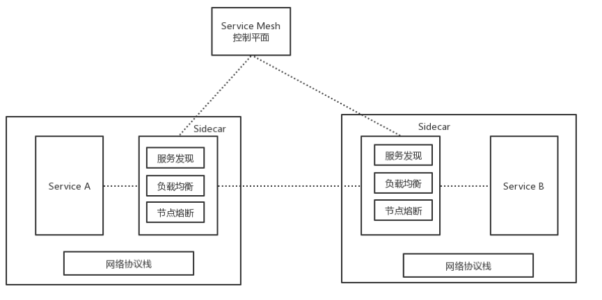 在Service Mesh发展早期,Service Mesh以Sidecar的形态存在。Sidecar模式下,网络代理服务在微服务旁边,为微服务提供通信和链路治理功能。因此,数据平面代理服务也经常被简称为Sidecar。