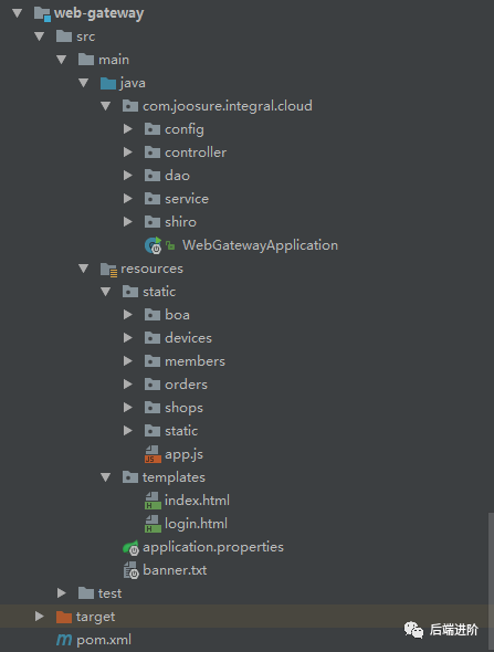 WebGatewayApplication.java:应用程序的启动引导类(bootstrap class),也是主要的 Spring 配置类;