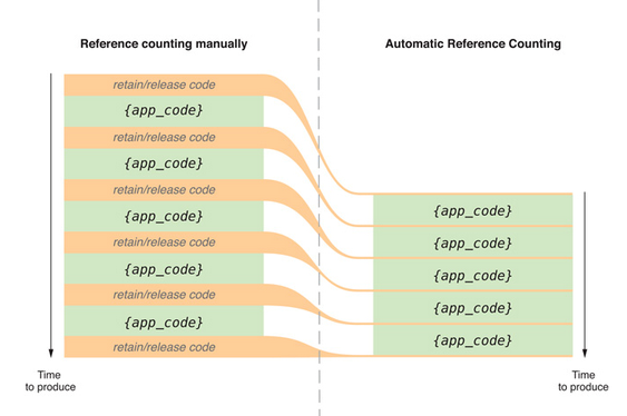 Objective-c中提供了两种内存管理机制MRC(Mannul Reference Counting)和ARC(Automatic Reference Counting),分别提供对内存的手动和自动管理,来满足不同的需求。MRC与ARC区别如下图所示。