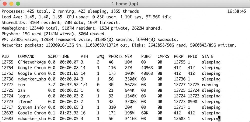 有了操作系统后,情况就变得大不一样了,电脑可以同时运行多个程序。通过 TOP 命令可以查看电脑上当前正在运行的进程(和程序有着密切的关系),见下图。